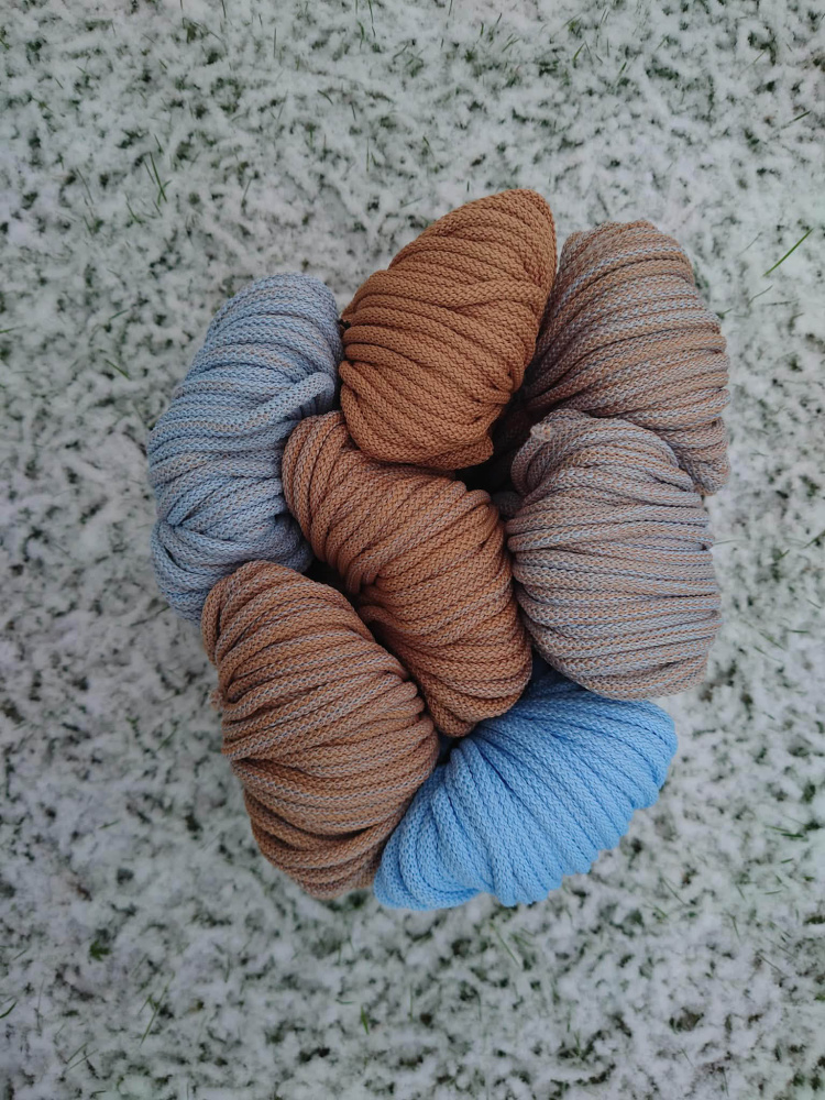 Denne varen inneholder 7 forskjellige farger som sklir over i hverandre, 50 meter av hver, så tilsammen 350 meter tykk heklesnor. Leveres som 7 enheter i bunt.